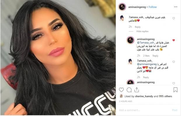 تفاعل متابعو أمينة بشدة مع أحدث صورها التي بدت فيها مختلفة بشكل لافت، فأخذ البعض يشبهها بالفنانة أحلام، فكتب لها إحدى المتابعات: “ايه اللي عملتيه في شكلك ده فين أمينة بقيتي أحلام”، فردت عليها: “دققي انت بس” ووضعت لها “إيموجي” قبلة.