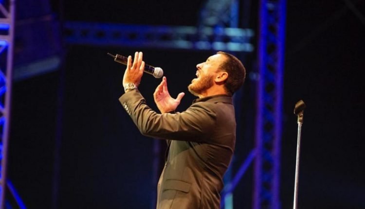 القيصر كاظم الساهر يجلس على كرسي بسبب عدم قدرته على استكمال حفله بأمريكا